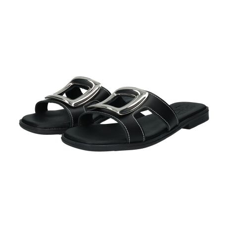 甲のメタルパーツがアクセントになったフラットサンダル。