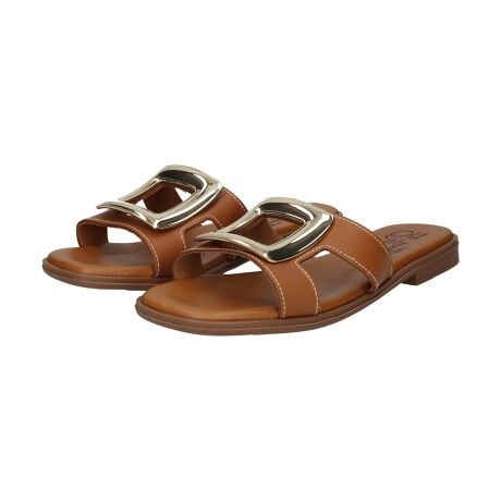甲のメタルパーツがアクセントになったフラットサンダル。
