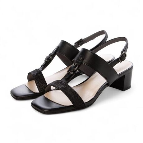 前側のベルトにはさりげないラメ素材を施し、シンプルながらも華やかさをプラス