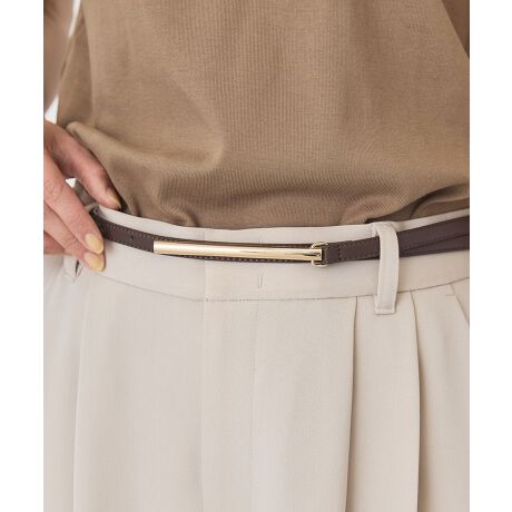 細めのフォルムにメタルバックルをあしらった洗練されたデザインのスリムベルトです。ベルト穴で調整可能なので、パンツのベルトループやワンピースのウエストマーク、ジャケットの上から締めるスタイリングなど幅広くお使いいただけます。シンプルで合わせやすく、さりげなくウエスト周りにメリハリを加える1本として重宝するアイテムです。※モデル着用画像は、光の当たり具合で色味が違って見える場合がございます。※お使いのモニター環境によって商品の色味が違って見える場合がございます。