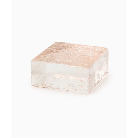 厚みのある無垢ガラスにゆらぎ模様を閉じ込め、光の当たり方によって陰影が変化し、空間に柔らかな輝きをもたらします。