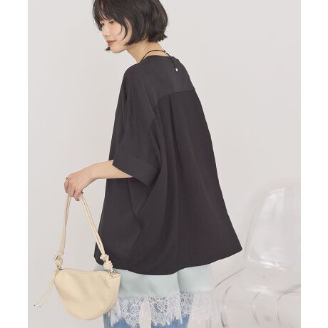 異素材ミックスで魅せる大人のリラックストップスひんやりとした肌触りが心地よく、暑い日でも快適に過ごせる一枚です。異素材の切り替えがシンプルな中にもアクセントを生み、さりげなくおしゃれな印象を与えます。ゆるやかなコクーンシルエットとドルマンスリーブが体のラインを拾いにくく、リラックス感のある着こなしを演出します。バックタックが後ろ姿に動きを出し、シンプルながらもこなれた雰囲気に仕上げてくれます。パンツスタイルにもスカートにも合わせやすく、幅広いカジュアルシーンで活躍します。着るだけで大人の抜け感を楽しめる、毎日頼れるアイテムです。