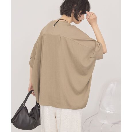 異素材ミックスで魅せる大人のリラックストップスひんやりとした肌触りが心地よく、暑い日でも快適に過ごせる一枚です。異素材の切り替えがシンプルな中にもアクセントを生み、さりげなくおしゃれな印象を与えます。ゆるやかなコクーンシルエットとドルマンスリーブが体のラインを拾いにくく、リラックス感のある着こなしを演出します。バックタックが後ろ姿に動きを出し、シンプルながらもこなれた雰囲気に仕上げてくれます。パンツスタイルにもスカートにも合わせやすく、幅広いカジュアルシーンで活躍します。着るだけで大人の抜け感を楽しめる、毎日頼れるアイテムです。