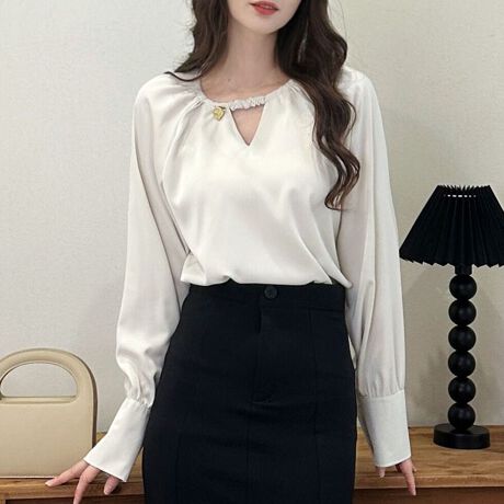 女性らしい柔らかい印象のVネックがデコルテをキレイに魅せてくれます。