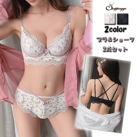 刺繍フラワーがポイントのブラ&ショーツセット。