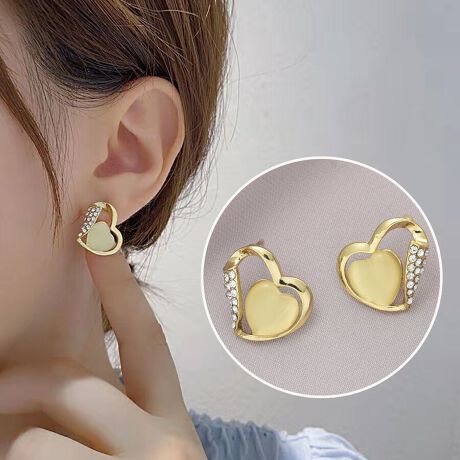 [型番:6AILI012PC]キラキラ大人かわいいハートピアス。程よいボリュームのある存在感で、耳元が品よく華やぐ逸品。自分へのご褒美や女性、彼女、妻への誕生日、クリスマス、ホワイトデーなど、記念日のプレゼントに。カラー:ゴールドポスト(針)/金ゴールド:約1cm素材:合成樹脂*ラインストーン*合金高さ:約1.8cm生産国:中国すべて平置きサイズです。(計測に付きましては手測りとなりますので 若干の誤差はご了承ください)
