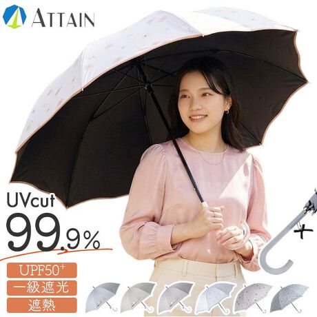 【晴れの日も雨の日もお出かけの相棒】日傘&雨傘として使える「ATTAIN 晴雨兼用手開き 長傘 55cm」が登場!【一級遮光で晴れた日の味方】UVカット率99.9%、UPF50+!光を通しにくい生地を使い、気になる紫外線をカット〇【遮熱効果で涼しさキープ】内側ブラックコーティング。光を反射させて温度の上昇を防ぐ遮熱効果で、照り返しもガード◎【お天気が不安定な日にも対応】晴れの日だけでなく、雨の日にも使える兼用傘。どちらの天候も万能に対応♪【グラスファイバーで丈夫な骨】軽量かつしなやかなグラスファイバー骨がしっかり風圧を受け流し、長く使い続けられる。【セーフガード付きの手開きタイプ】傘生地がスムーズに開閉できる手開き傘。手指を挟みにくいよう配慮された安心設計。