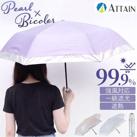 【強風も日差しも、怖くない傘】強風対応&一級遮光+遮熱効果搭載。パール加工が上品な「ATTAIN 晴雨兼用ミニ傘 55cm」。【強風にも揺るがない傘】強風対応設計を採用しているから、突然の強い風にも骨が負けずしっかり形をキープする!【遮光&UV対策は万全】一級遮光とUV99.9%カットのダブル効果で、紫外線が気になる季節も心強い晴雨兼用傘◎【開閉も安心な仕様】手開き部分にカバーが付いているから、傘を開く瞬間も指を挟む心配なく安心〇【パール加工で品格アップ】外側のパール加工がさりげない光沢を生み出して、大人の女性のスタイルを格上げする一本〇【どこでも持ち歩ける軽さ】収納時はすっきりまとまり、通勤バッグにも置き傘としても重宝する携帯しやすさ♪