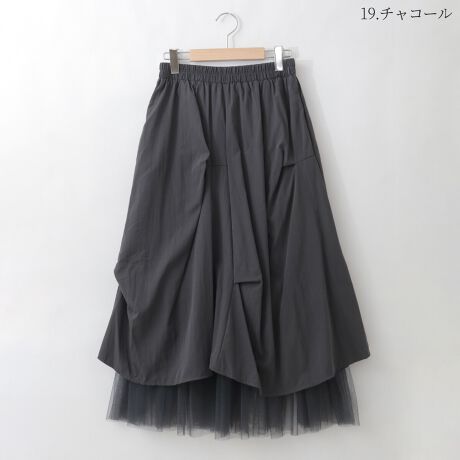 チュールを施した裏地の裾が軽やかに揺れ、一枚でレイヤード風のこなれた着こなしが楽しめます。