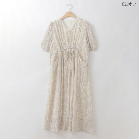 フロントギャザー小花柄ワンピース