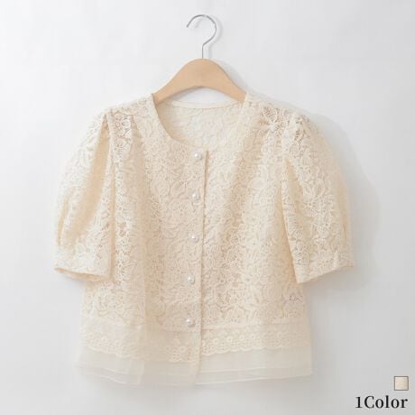 繊細なフラワーレースを贅沢にあしらったクラシカルな雰囲気漂うデザインブラウス。