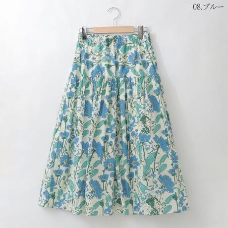 コットンのナチュラルな風合いにフローラルモチーフをプリントした上品で華やかなフレアスカート。