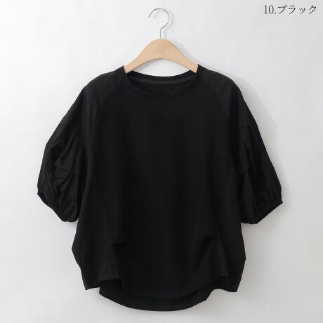 袖や身頃にはタックを施し、ふんわりとした柔らかな立体フォルムがモード感をプラス◎