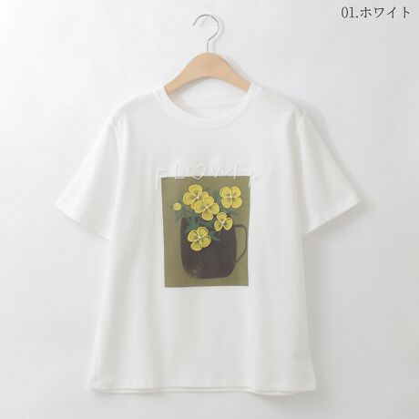 フラワー刺繍プリントカットソー