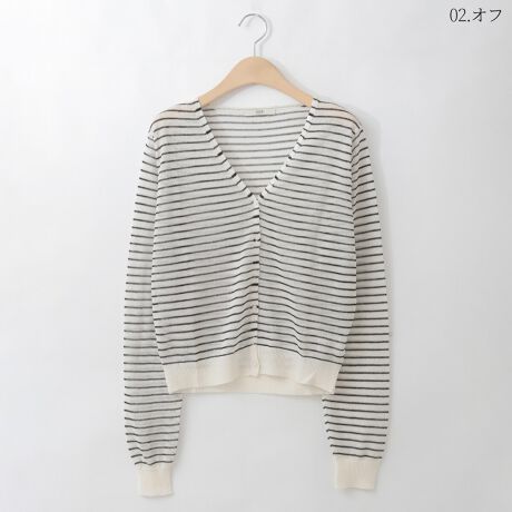 コットンリネンのシアーニットで仕立てた清涼感溢れるVネックカーディガン。