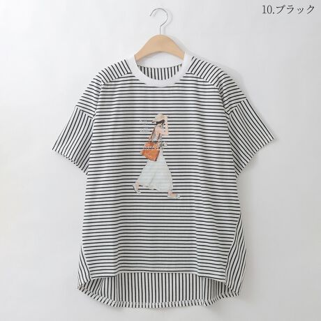 爽やかなボーダー柄にガールプリントを重ねた遊び心のあるカットソー。