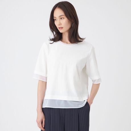 袖・裾のシアー素材がアクセントのカットソーです。