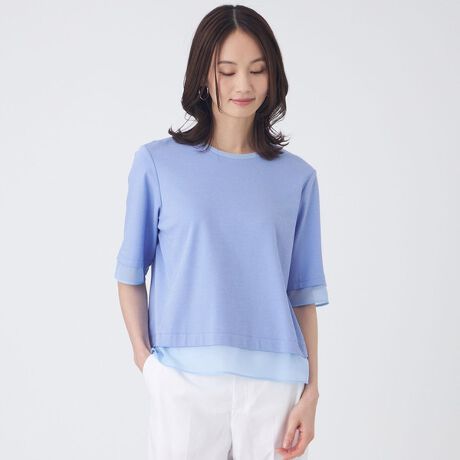 ■トレンドのシアー素材を襟ぐり・袖・裾にコンビ使いしたカットソー