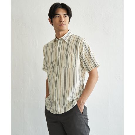 肌触りと通気性に優れたパナマ織りの半袖シャツ。