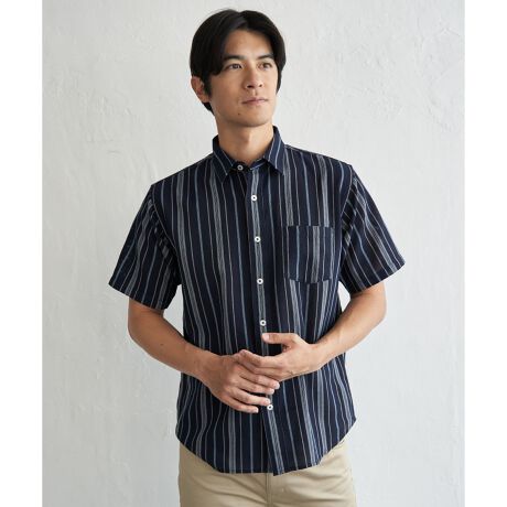肌触りと通気性に優れたパナマ織りの半袖シャツ。