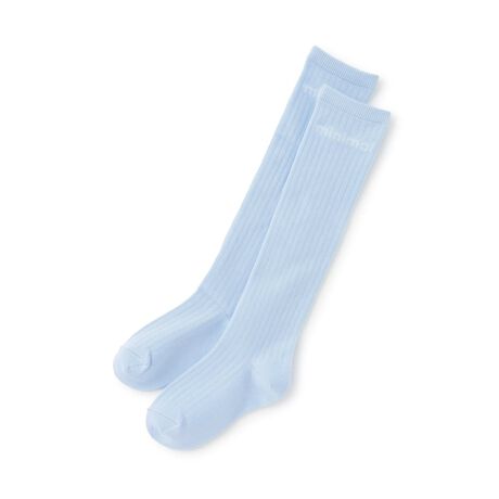 サイドのブランドロゴでアクセントを効かせたハイソックスです。どんなコーディネートにも取り入れやすいシンプルな配色。伸びやすくフィット感の良いリブ編みになっています。ミニスカートやショートパンツと合わせるスタイリングがおすすめです。