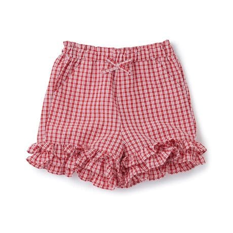 フリルをたっぷりとあしらった女の子らしいショートパンツです。カラーごとに異なるデザインなので、複数枚持っておくのがおすすめ。ウエストはアジャスターつきの総ゴム仕様になっており、サイズ感を調節できます。触れた瞬間にひんやりと感じる接触冷感仕様です。内側にお名前を記入できるタグつき。アイボリー、黄色、ブルー、黒には裏地がついています。【おすすめの着用時期は春夏シーズン】