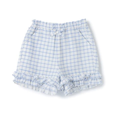 フリルをたっぷりとあしらった女の子らしいショートパンツです。カラーごとに異なるデザインなので、複数枚持っておくのがおすすめ。ウエストはアジャスターつきの総ゴム仕様になっており、サイズ感を調節できます。触れた瞬間にひんやりと感じる接触冷感仕様です。内側にお名前を記入できるタグつき。アイボリー、黄色、ブルー、黒には裏地がついています。【おすすめの着用時期は春夏シーズン】