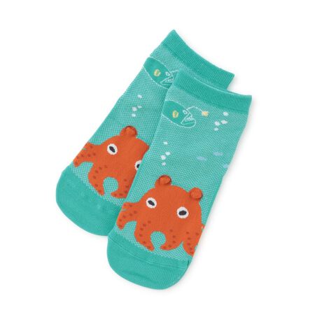 日常に彩りを与えてくれるような個性あふれるデザインのショートソックスです。大きなメンダコさんの上で、チョウチンアンコウや小魚たちが海遊する愉快なイラスト。メッシュ素材で通気性に優れており、長時間でも快適なはき心地が続きます。