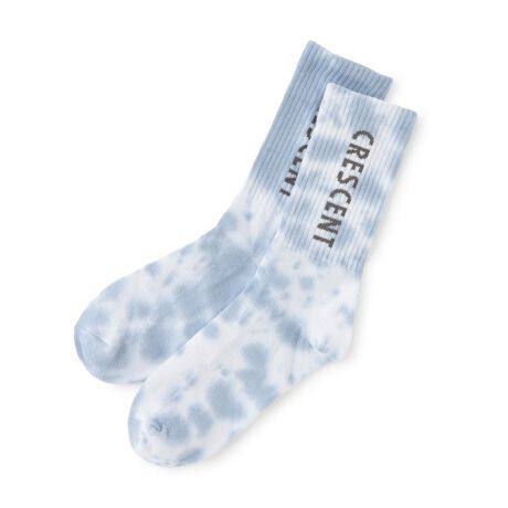 さわやかなカラーリングになっているタイダイ柄のソックスです。縦に配した大きなロゴデザインでアクセントを効かせました。足首に当たる部分は、伸びが良くやさしいフィット感のリブ編み。はき回しやすいミドル丈なので、日常使いにもスポーツシーンにも重宝します。