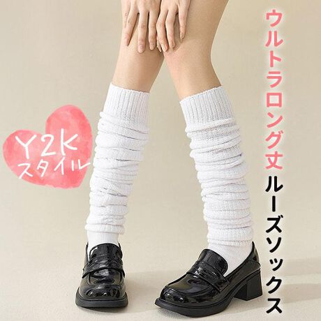 圧倒的なボリューム感を叶えるウルトラロングタイプのふわくしゅルーズソックス。伸びの良いリブ編みがふんわりと重なり、脚を細見せしながら存在感たっぷりのシルエットを演出。制服コーデ・通学・量産型・Y2K・地雷系・推し活ファッションとの相性は抜群。ローファーやスニーカーに合わせるだけでトレンド感あふれる可愛い足元に。デイリーはもちろん、イベント・ライブ・ダンス・コスプレにも大活躍の人気アイテム。