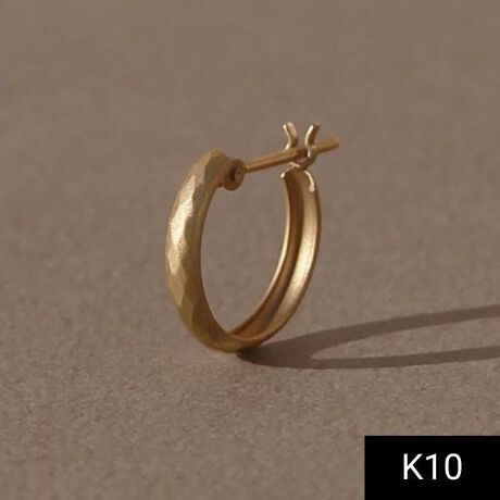 【K10】ダイヤモンドカットフープピアス/片耳 マットゴールド