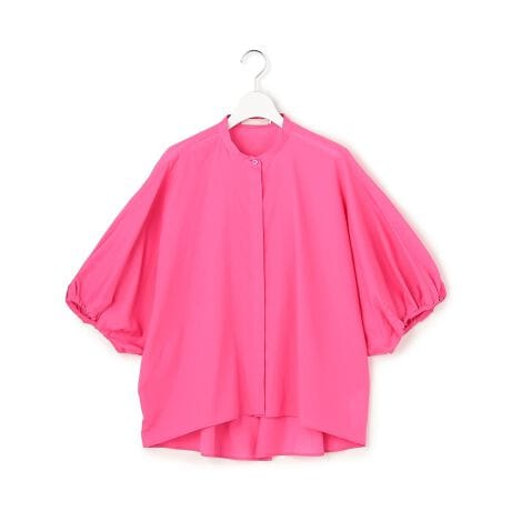 ■デザイン一枚着としてはもちろん、羽織としても決まるポンチョ型のシャツブラウスです。 ゆったりとした袖口は、共布の紐をドローストリングすることでギャザーが寄り、お好みに合わせてシルエットの変化をお楽しみいただけます。首元はすっきりとしたバンドカラーで、前後差のあるステップヘムデザインが、横から見た際も決まるシルエットを演出します。