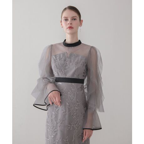 透け感のあるチュール素材に立体的な装飾を重ねることで、奥行きのある洗練されたスタイルを叶え、オケージョンシーンを一層エレガントに彩ります。