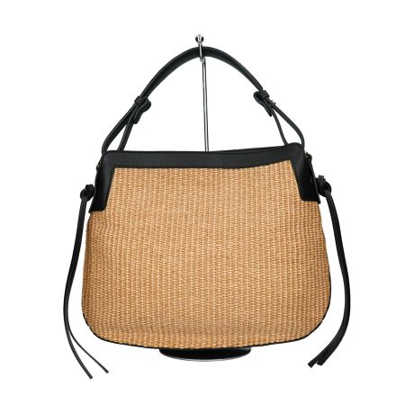 最近のラフィアバッグは型崩れしにくく、街歩きでもきちんと見えるフォルムを保持。きれいめコーデにも合わせられます。