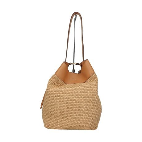 ナチュラルな風合いと都会的な洗練さを兼ね備えた、ウーブンバケットバッグ。