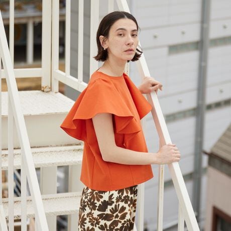 甘さを抑えた、大人のラッフルデザインTシャツ