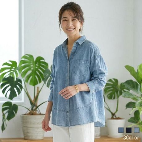 ミニマルな胸ポケットにラウンドステッチを加えたゆったりとしたヘムラインも特徴的。