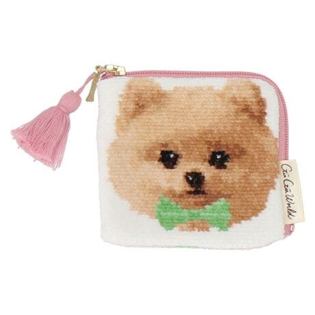 愛らしいわんちゃんとお花の組み合わせがかわいいミニサイズのシェニールフラットポーチ。リップクリームやアクセサリーなど小物を入れるのにぴったりの可愛らしい大きさが魅力。