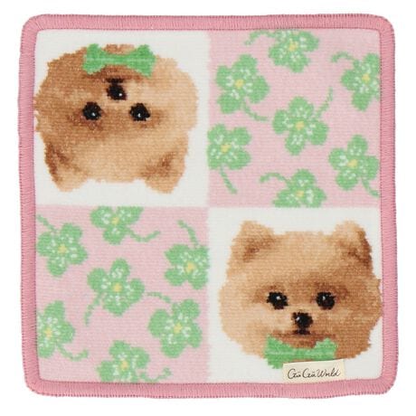 愛らしいわんちゃんとお花の組み合わせがかわいいシェニール織ハンカチ。アート作品のようなハンカチは贈り物にもぴったりのアイテムです。