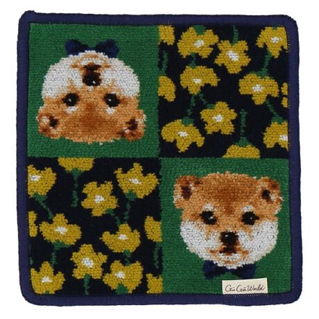 愛らしいわんちゃんとお花の組み合わせがかわいいシェニール織ハンカチ。アート作品のようなハンカチは贈り物にもぴったりのアイテムです。