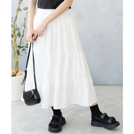 ふんわりティアードロングスカートボリュームたっぷりで体型カバー〇
