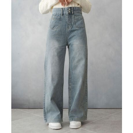 ハイウエストダブルボタンデニムパンツ