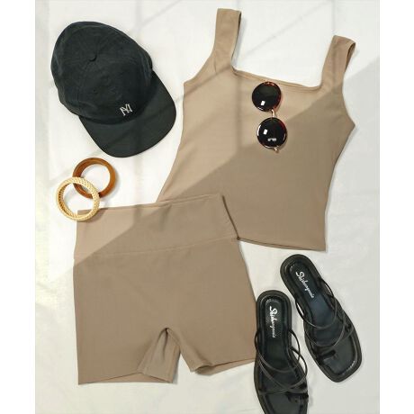 柔らかなリブ生地の上下セットアップ水着。