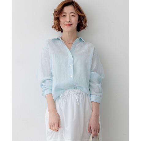 23区で長く愛される定番素材「LIBECO(リベコ)」を使用した、シンプルながらも洗練されたリネンシャツです。今シーズンはサイズ感を丁寧に見直し、さらっと羽織るだけでこなれた雰囲気が生まれるようアップデートしました。襟元を少し後ろに抜いて着ていただくと、首元がすっきりと見え、自然と女性らしい抜け感のある着こなしが叶います。 ボトムスを選ばないベーシックなデザインで、デニム合わせのカジュアルスタイルから、きれいめスカートと合わせた大人コーデまで幅広く活躍します。夏の冷房対策や日除けの羽織りとしても重宝する一枚です。 カラーは、清涼感のある淡いブルー(#070)、顔周りを明るく彩るピンク(#112)、万能に使えるホワイト(#001)、コーディネートのアクセントになる鮮やかなオレンジ(#020)、深みのある落ち着いたブルー(#070)、ナチュラルで上品なベージュ(#033)の6色展開です。