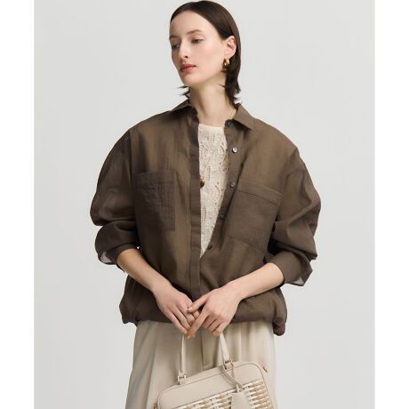 程よい透け感と光沢が上品。アレンジ自在な大人のシアーシャツ