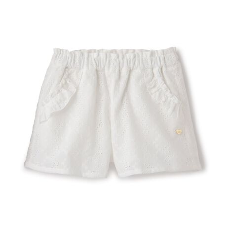 両サイドのフリルポケットがかわいいキュロットです。ウエストは動きやすく脱ぎはきが簡単な総ゴムタイプ。コットンレースのオフホワイトとラベンダーには裏地がついています。普段のお出かけ着や通学コーデなど、幅広く活躍するアイテムです。【おすすめの着用時期は春夏シーズン】