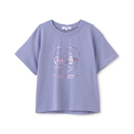 ハートの箔プリントがキラッと目を引くTシャツです。ガーリーなカラーバリエーションになっています。