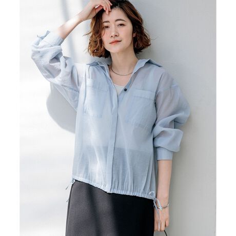 程よい透け感と光沢が上品。アレンジ自在な大人のシアーシャツ