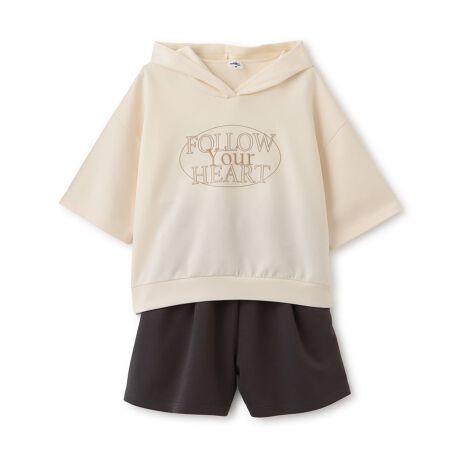 カジュアルなスタイリングを楽しめるゆったりシルエットのセットアップです。パーカにあしらった大きめのロゴ刺しゅうがおしゃれなポイント。ショートパンツはウエストが総ゴム仕様で、動きやすく脱ぎはきもラクラクです。両サイドにポケットつき。お出かけコーデにはもちろん、おうちでのリラックスタイムにも活躍します。※milkycoastはPupil Houseのお姉さんブランドです【おすすめの着用時期は春夏シーズン】
