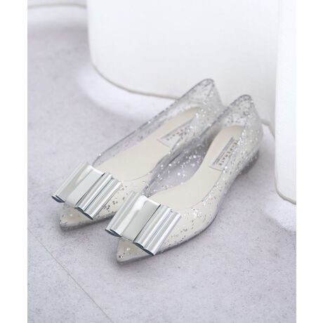明るい季節にぴったりの、軽やかで華やかなラメパンプス洗練されたシルエットにリボンディテールをあしらい、フェミニンさとモード感を兼ね備えたPVCパンプス。